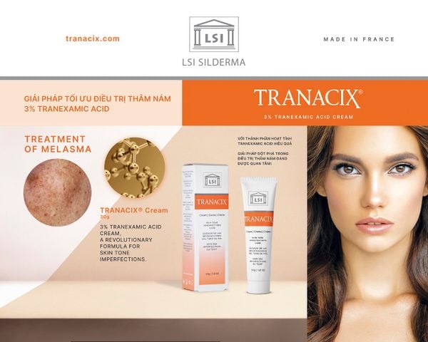 Với 3% tranexamic acid, tinh chất trị thâm nám Tranaxic cream giúp cải thiện làn da sạm nám hiệu quả.
